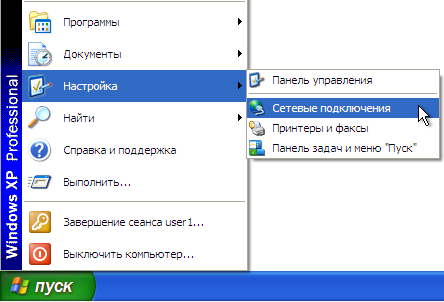 1. Открываем «Пуск» - «Настройка» - «Сетевые подключения».