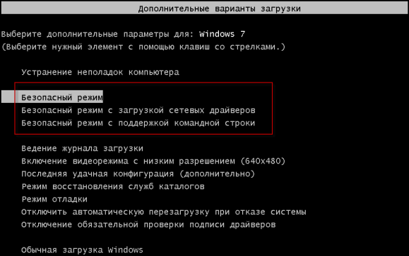 Если по какой-либо причине меню загрузки не отображается на экране послне нажатия кнопки F8 и систему грузится в обычном режиме, то выполните следующие действия: