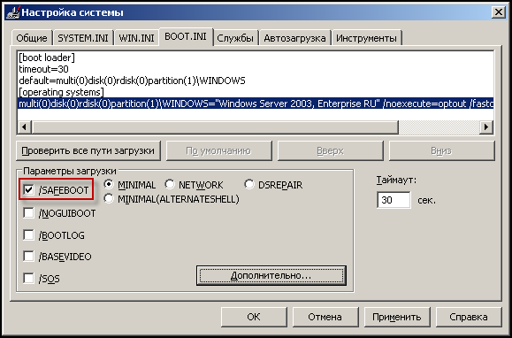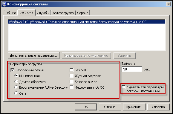 • После выполнения необходимых действий в безопасном режиме необходимо отключить параметр /SAFEBOOT, чтобы загрузиться в обычном режиме.