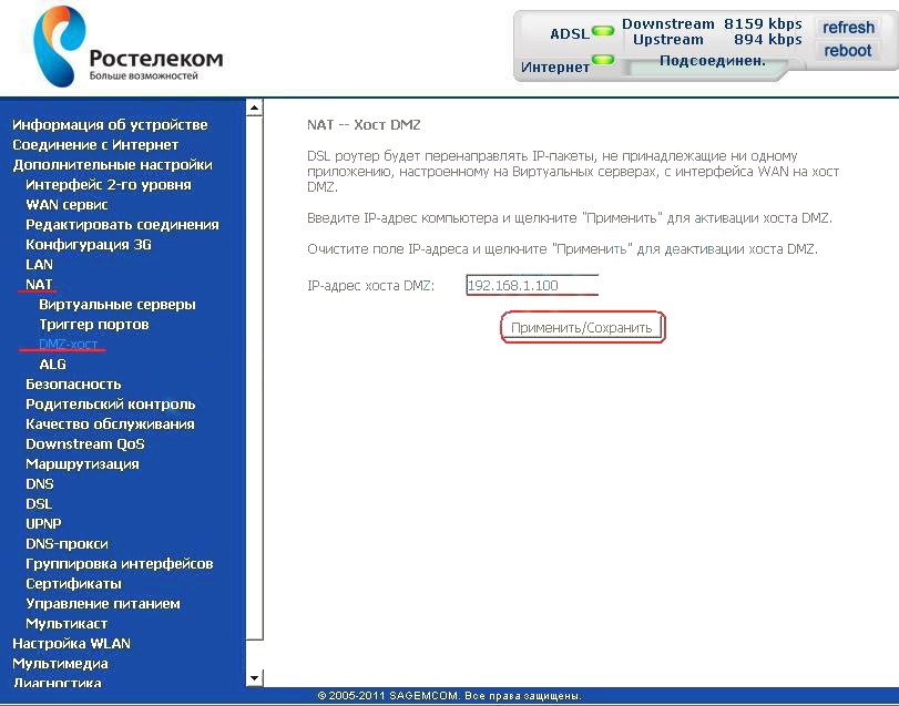 Открываем порт на sagemcom 2804