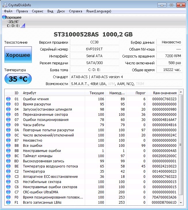 CrystalDiskInfo - мощная утилита для мониторинга состояния жестких дисков. CrystalDiskInfo позволяет просмотреть детальную информацию о накопителях, установленных в компьютере, а также параметры системы самодиагностики S.M.A.R.T., включая текущую температуру жесткого диска и степень его "здоровья".
