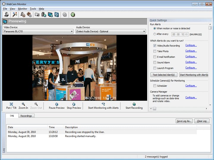 WebCam Monitor - это мощный программный инструмент, позволяющий превратить Ваш ПК в профессиональную систему видеонаблюдения. WebCam Monitor позволяет не только осуществлять наблюдение, но и вести видеозапись событий. При этом возможно как сохранение непрерывного видеоролика, так и запись отдельных кадров с заданным интервалом времени. Кроме того, возможна не непрерывная съёмка, а только непосредственная регистрация всех изменений (движение), попавших в поле зрения камеры.